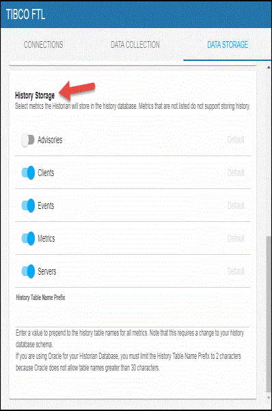 - In the History Storage region, select the toggle for the FTL metrics if you want to collect/deselect for the FTL metrics if you do not want to collect. Blue is enabled, gray is disabled.