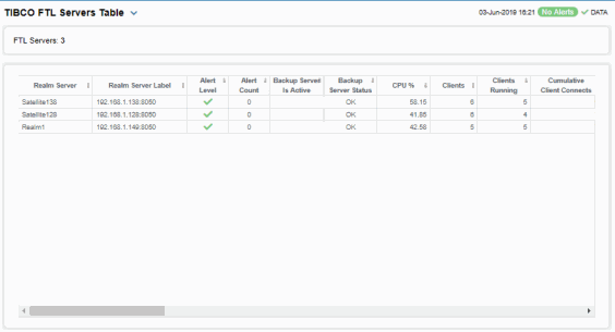These displays present performance metrics and alert status for all FTL servers. Displays are: