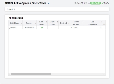 These displays provide detailed data for all grids in a heatmap and tabular format. Clicking Grids in the left/navigation menu opens the TIBCO ActiveSpaces Grids Table , which provides a tabular view of your grids and their associated metrics. Displays in this View are: