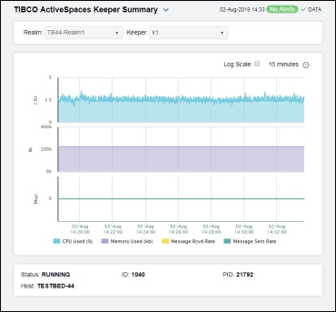| • | Single Keeper Summary: Opens the TIBCO ActiveSpaces Keeper Summary display, which allows you to view metrics and trend data for a particular keeper. |