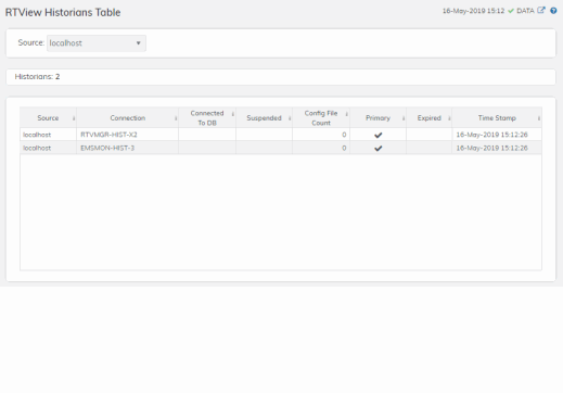 Track the status of RTView Historian Servers, their connections, status and role and data configuration file usage. View the caches that are archived by the Historian application, substitution variables associated with the history cache configuration file, as well as the history cache status.