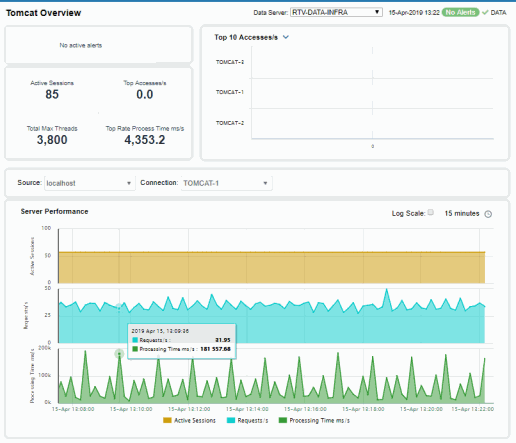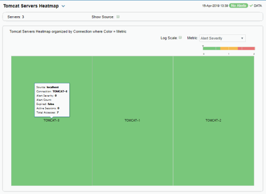 | • | Tomcat Servers Heatmap : Performance metrics for one Tomcat Server, including current and historic performance metrics. |