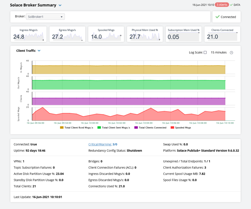 Consider keeping this display open for monitoring your Solace brokers at a glance.
