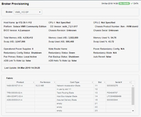 Broker Provisioning: Provides broker details such as host, chassis, redundancy, memory, and fabric data for a particular broker.