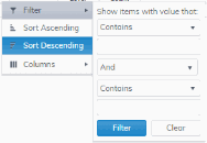 Search by clicking the right side of a column heading/Filter to open the Search, Sort and Choose Columns dialog: