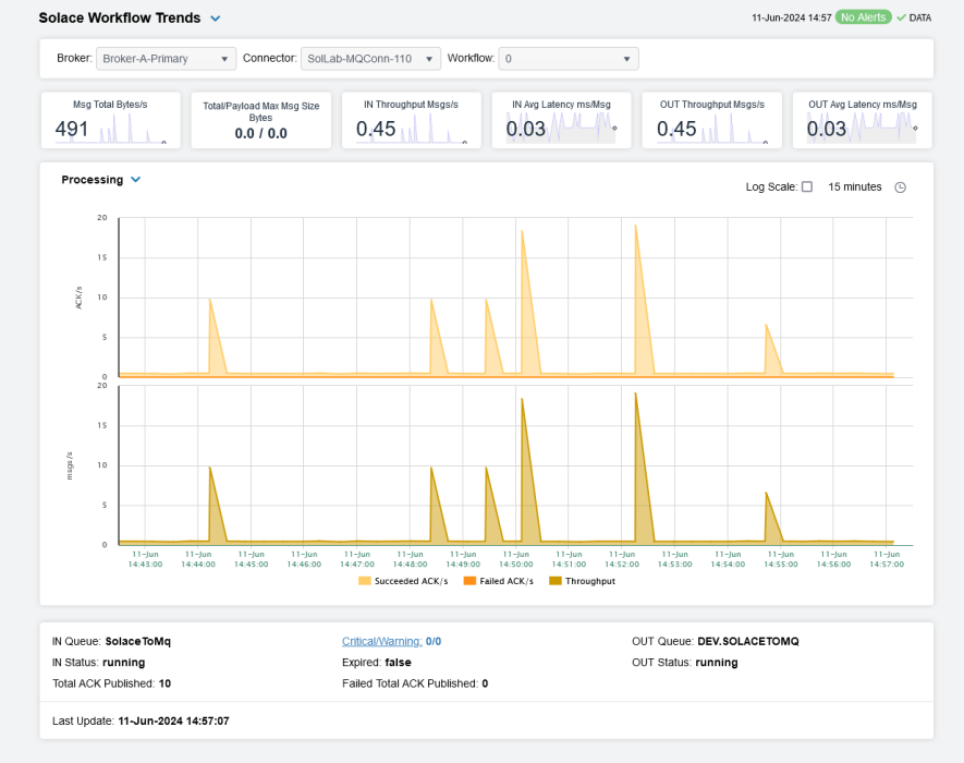 Double-click a row to drill down for that broker to the Solace Workflow Trends display.